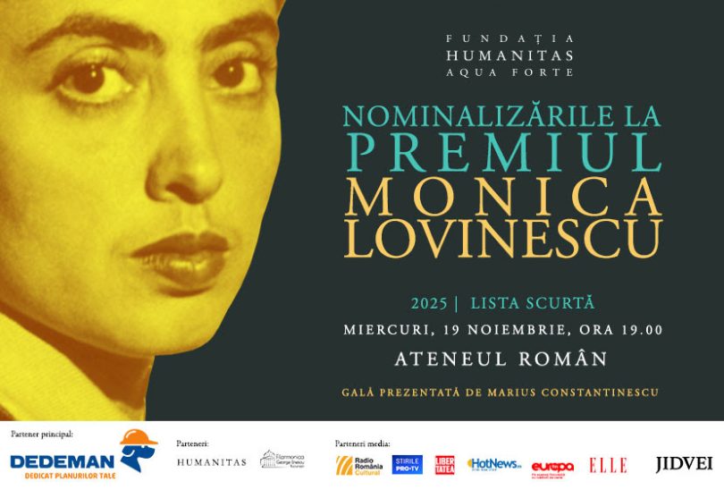 Fundația Humanitas Aqua Forte și Editura Humanitas anunță lista scurtă a nominalizărilor la Premiul „Monica Lovinescu“ 2025 și vă invită miercuri, 19 noiembrie, ora 19.00, la Ateneul Român, la gala dedicată decernării.